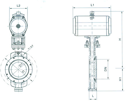 GT系列气动执行器可配至DN600,AW系列气动执行器可配蝶阀至DN200~1600。