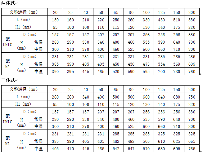 注:公称压力、公称通径超出列表范围的产品可与本公司商洽解决