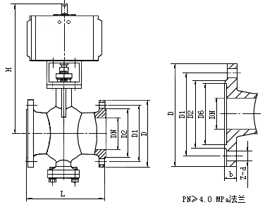 气动V型球阀由气动活塞式执行机构和V形球阀二部分组成。